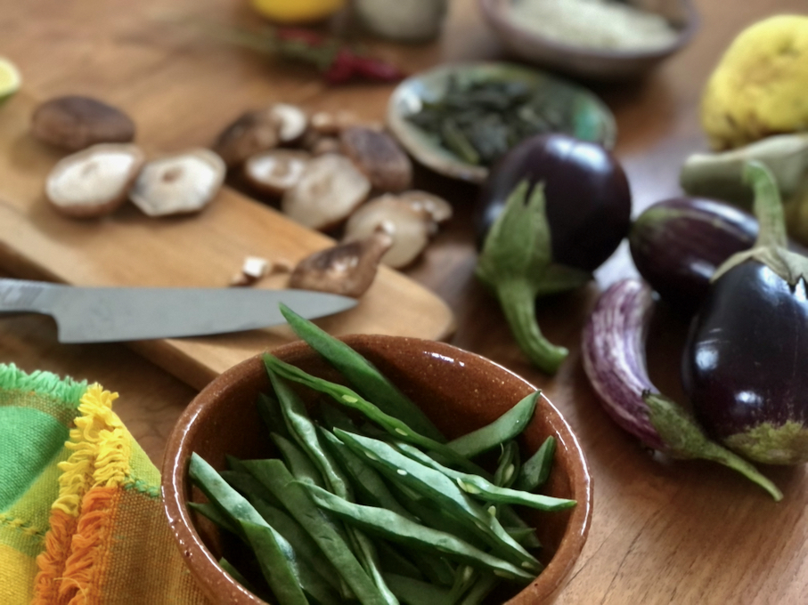 The result is a light vegetable dish with their individual flavors intact. The creamy texture of eggplants contrasts with the al dente of green beans and the delicate bite of mushrooms. Barely seasoned, the mild sauce accompanying the dish rounds it off with sesame aromas and the pungency of tamari. It is an ideal dish to side with brown rice made like in our Venere Rice recipe.