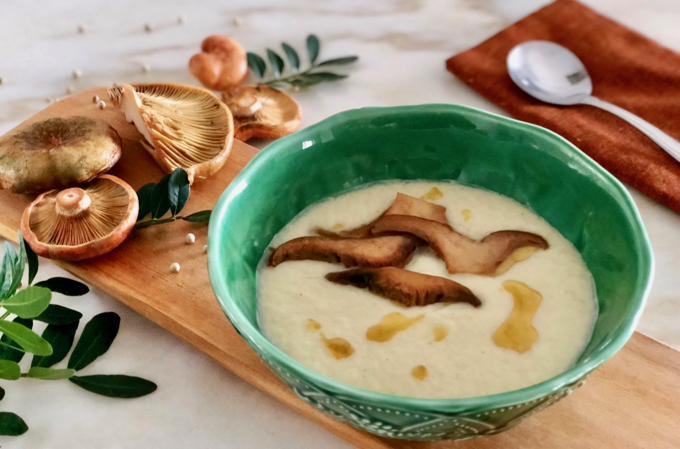 In this dish, the mild and light flavors of leeks blend beautifully with the mushrooms’ forest aromas . The olive oil tinted with the color of chanterelles aromatizes the soup. It’s a creamy delight with meaty bites. An ideal first course to start a winter meal wishing for a wild mushroom endless season.