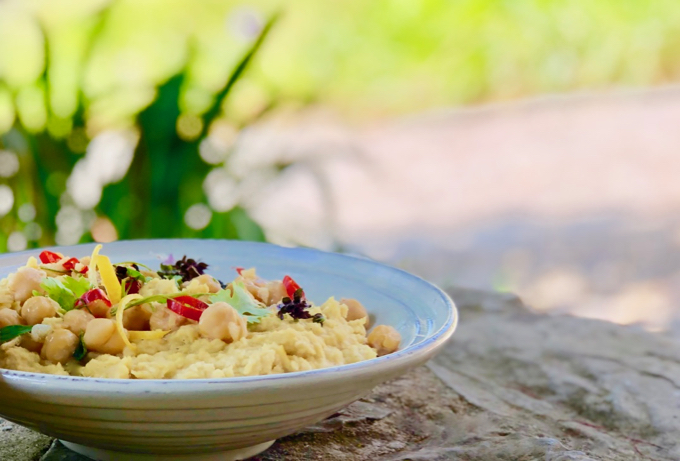 A few months ago we gave a catering service in a unique place, The Floating House in Tarifa, Spain. One of the dishes we served was our chickpea hummus. We decided to tune it to a brutal warm day with a few hints of coriander, lemon peel and ginger. One of the guests, Eva Carpinelli, Marine Biologist and founder of the Nereide association for the conservation of the marine ecosystem of the Strait of Gibraltar, approached us and said: This is the best hummus I’ve ever tasted. Can you give me the recipe?
