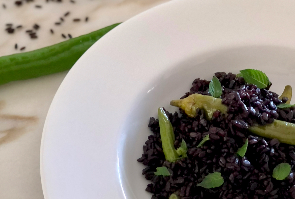 In our Venere Rice with Peppers we combine green peppers fried and sautéed with the rice. We do not add anything else (garlic, onion, aromatics, etc) to avoid transforming the delicate aroma of Venere rice. We accompany it with a tahini sauce to add creaminess and… sesame!