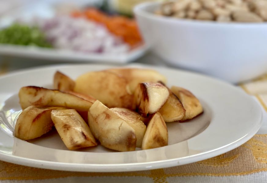 In our White Beans with Quince we add them to a creamy bean stew that starts with a northern Italian stir-fry with celery, onion and carrot. A bunch of ground rosemary and hazelnuts builds depth and the quinces add joy to the dish. The result is a creamy, fresh and aromatic stew. A traveling dish, Rosemary takes us to the Mediterranean, quinces to the Garden of the Hesperides.